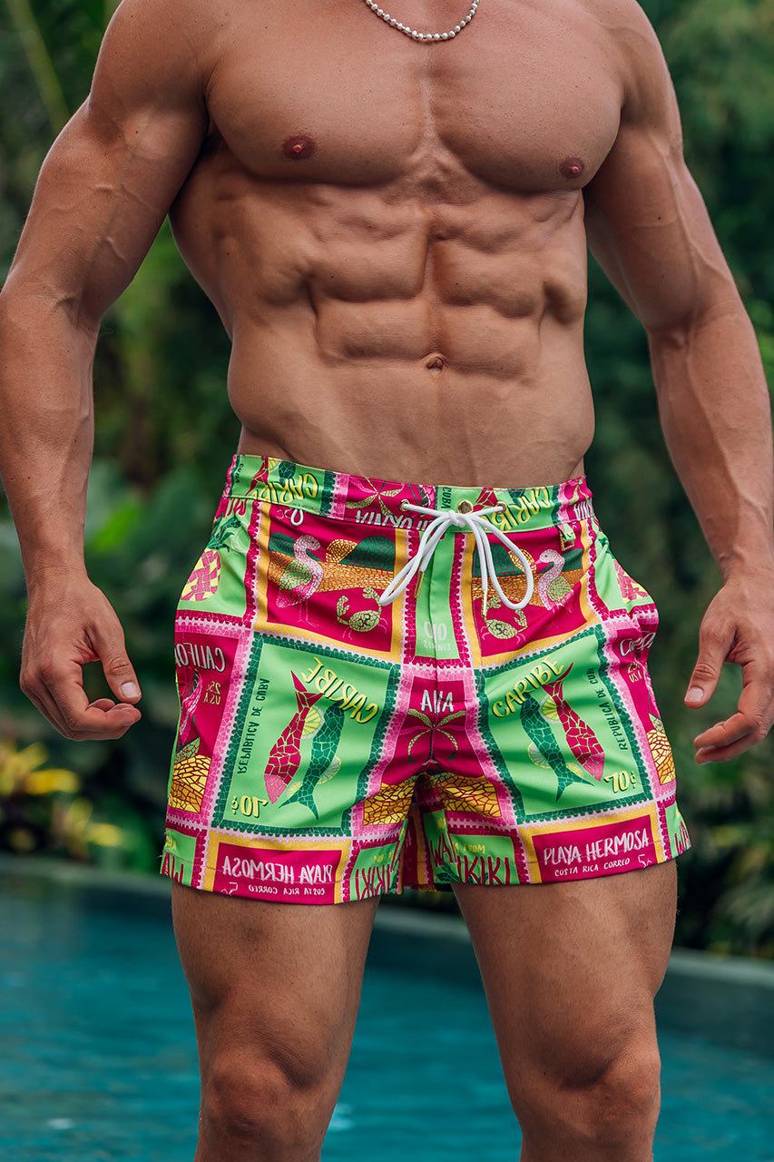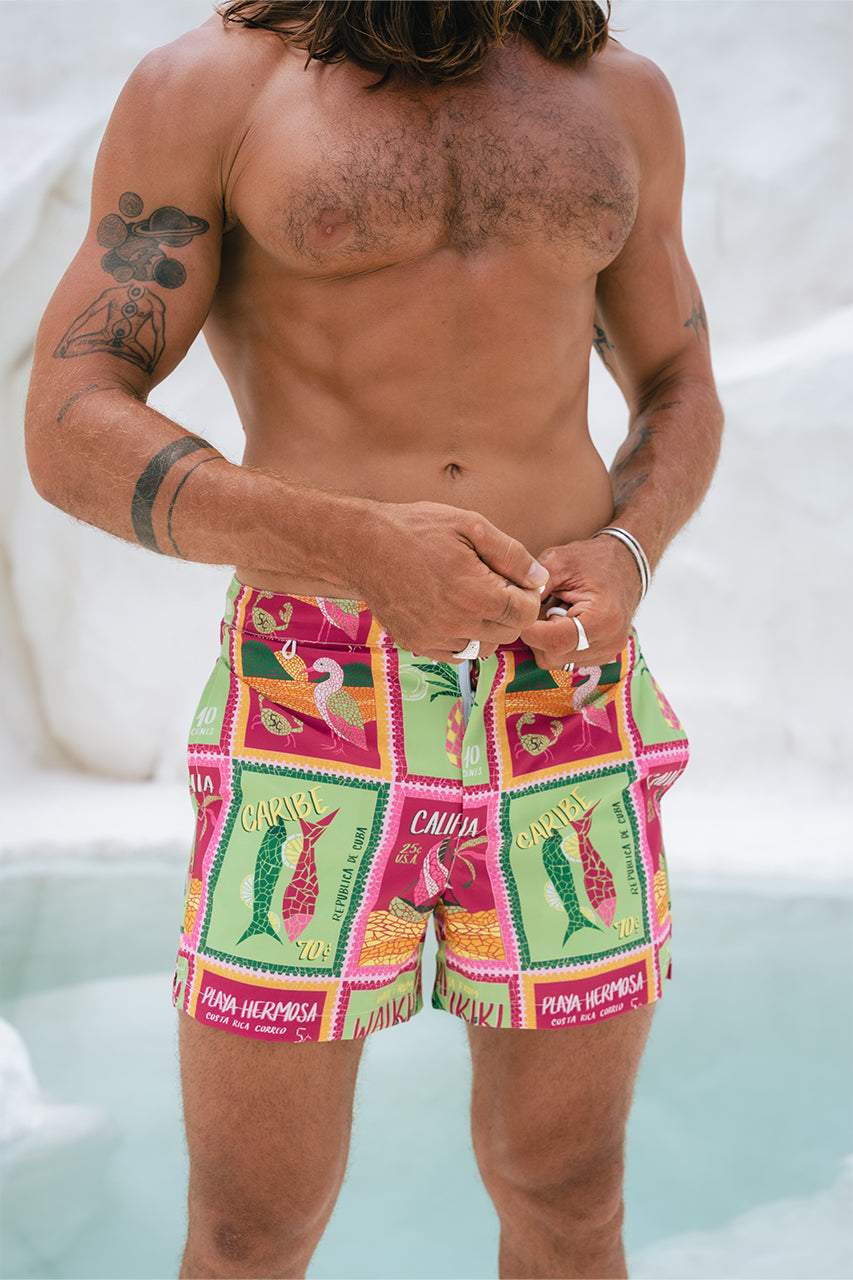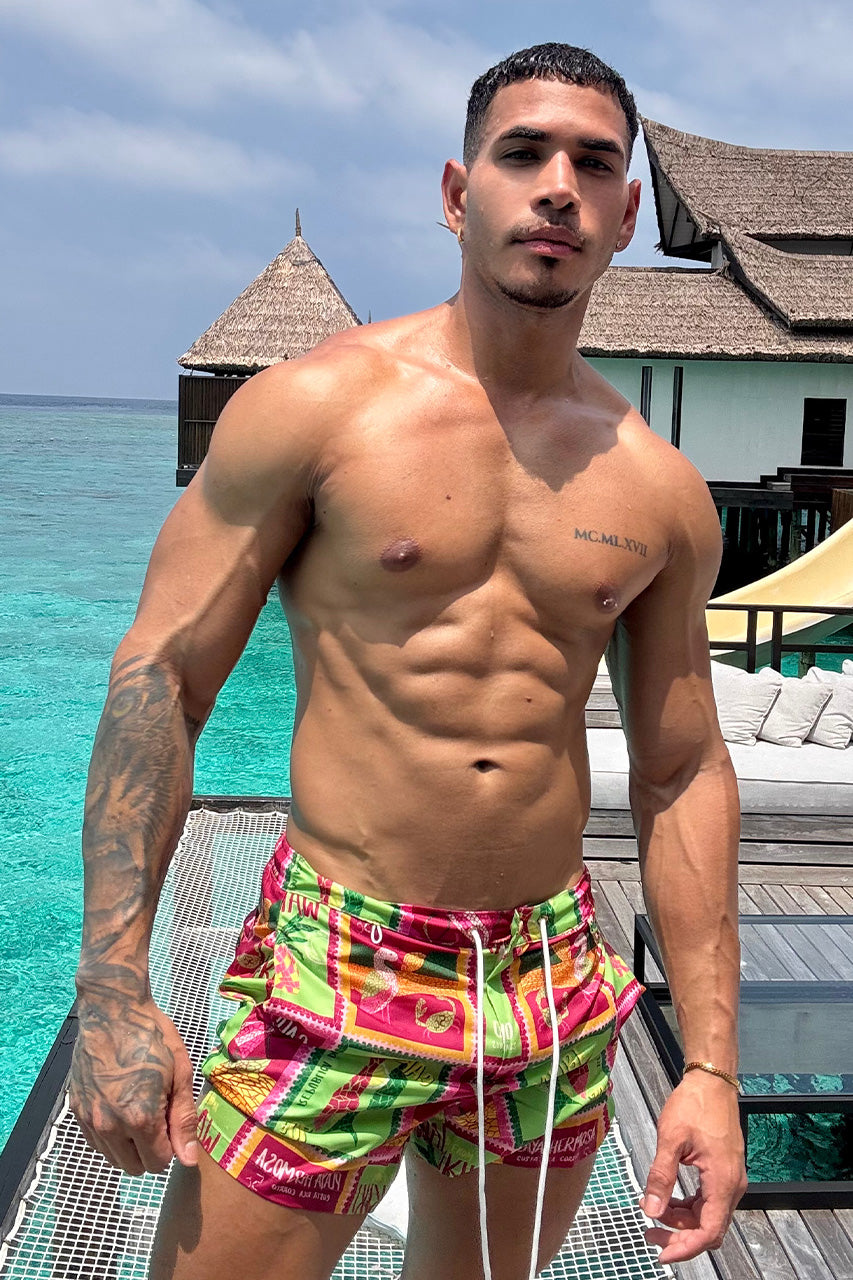Say hello to summer vibes with our Amalfi Shorts! Featuring a standout print, they will see you through beach days this summer. – Relaxed fit- Elasticated waist band wi