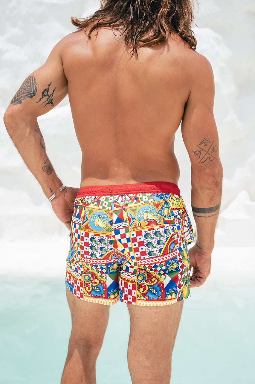 Say hello to summer vibes with our Amalfi Shorts! Featuring a standout print, they will see you through beach days this summer. – Relaxed fit- Elasticated waist band with drawstring- Side pockets- Underwear net lining- Non-stretch- Body: 95% Polyester u0026 5% Spandex, Lining: 87% Polyester u0026 13% Spandex Please refer to care label for garment care instructions. Colours may appear slightly different to the website due to lighting, computer picture resolution and monitor settings. Print placement may vary between each individual item. ~section~ Length (Size M):