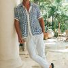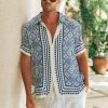 With a silky finish and mosaic inspired print, our Bodhi Shirt is a versatile piece to elevate your Euro summer wardrobe. – Relaxed fit- Short sleeves- Centre front button closure- Unlined, non-stretch- 50% Rayon u0026 50% Cotton Please refer to care label for garment care instructions. Colours may appear slightly different to the website due to lighting, computer picture resolution and monitor settings. Print placement may vary between each individual item. ~section~ – Length (Size L): 74cm/29inches. – If you need more help with sizing, see our size guide or email us at [email protected] ~section~ Gio wears a size L and is 188cm tall.