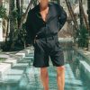 Inpsired by classic tailoring with an added cool factor, our Damon Shorts are a relaxed fit to give your look the perfect effortless feel. – Relaxed fit- Button and fly closure – Side pockets- Unlined with stretch- 64% Polyester, 34% Rayon u0026 2% Elastane Please refer to care label for garment care instructions. Colours may appear slightly different to the website due to lighting, computer picture resolution and monitor settings. ~section~ – Length (Size L): 51.5cm/20.5inches. – If you need more help with sizing, see our size guide or email us at [email protected] ~section~ David wears a size L and is 178cm tall.