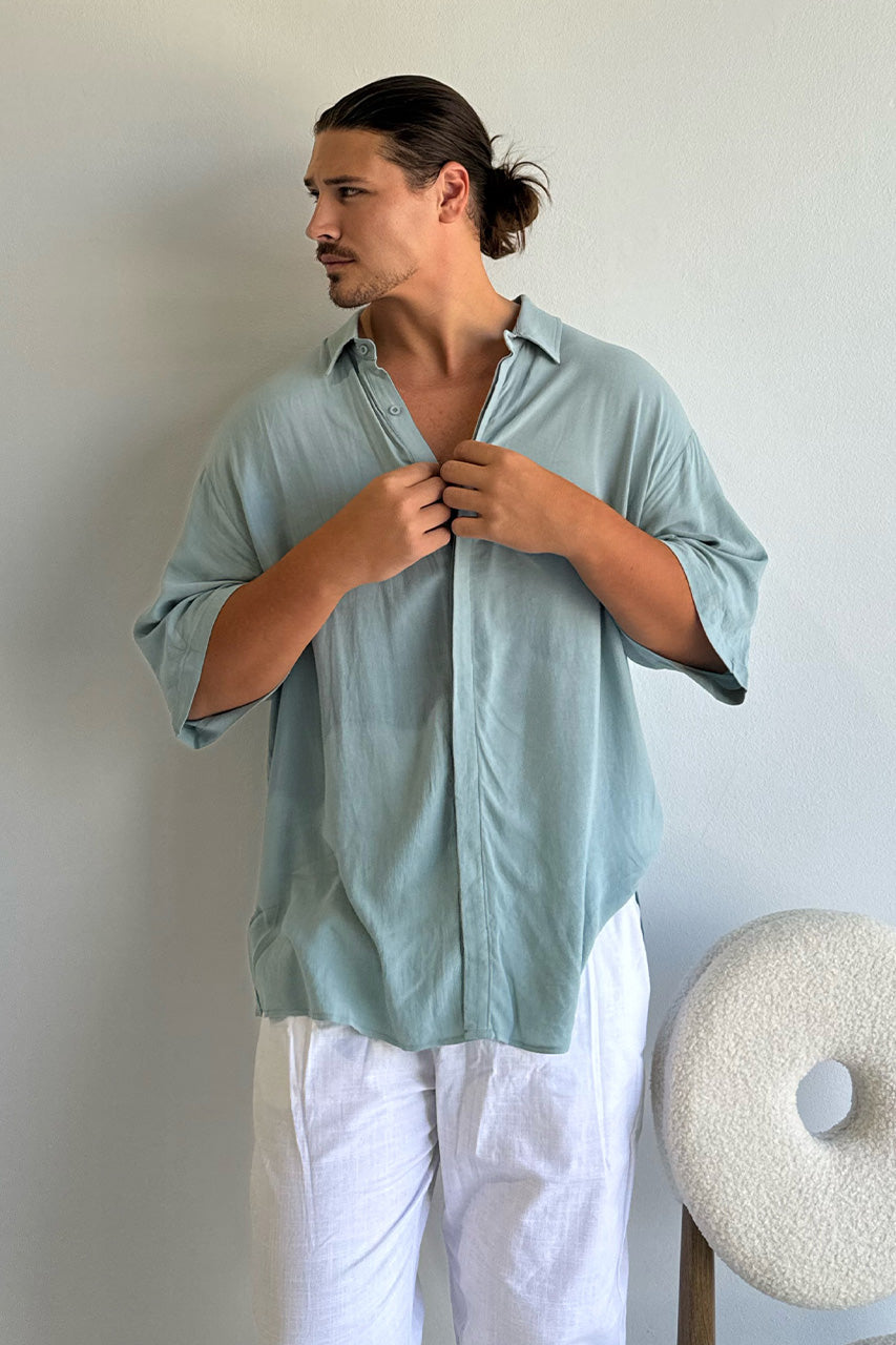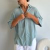 – Oversized fit – Size down for a more fitted look- V neck- Button closure- Unlined without stretch- 85% Rayon u0026 15% LinenPlease refer to care label for garment care instructions. After washing, please ensure to iron the garment to return it to its original size. Colours may appear slightly different to the website due to lighting, computer picture resolution and monitor settings. ~section~ – Length: 76.5cm/30inches (Taken from size L). – If you need more help with sizing, see our size guide or email us at [email protected] ~section~ Shaun wears a size L and is 188cm tall.