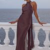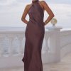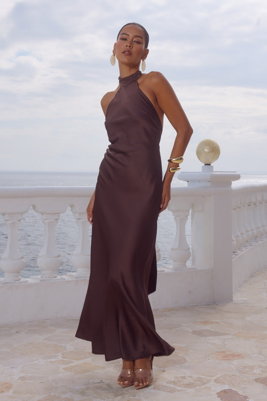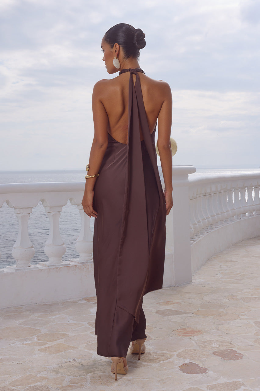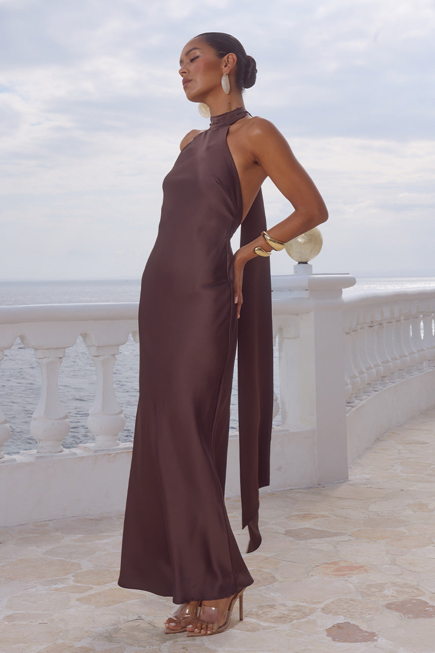 COMING SOON – Hold tight! This style will be yours by early September. Our Arabelle Maxi Dress features a classic silhouette, with a high neckline that ties and falls to beautiful sashes down the back. – Maxi length- High halter neck- Centre back invisible zipper- Lined, non-stretch- Body: 97% Polyester u0026 3% Spandex, Lining: 100% Polyester Please refer to care label for garment care instructions. Colours may appear slightly different to the website due to lighting, computer picture resolution and monitor settings. ~section~ – Length (Size S): 140cm/55inches. It is true to size. – If you need more help with sizing, see our size guide or email us at [email protected] ~section~ Annabel wears a size AU 8/ S/ US 4 and is 175cm tall.