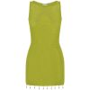 Good news — we’re restocking this style soon! If your size is sold out, select your size and register your email to be notified when it’s available. Crafted from a luxe knit with a subtle shimmer and delicate seashell hardware, our Ariya Mini Dress will have you soaking up the sun in a beach club in St Tropez. – Mini length- Boat neck- Slip on style- Unlined, with stretch- 80% Lurex u0026 20% Viscose Please refer to care label for garment care instructions. Colours may appear slightly different to the website due to lighting, computer picture resolution and monitor settings. Please fold knitted garments and do not hang to avoid stretching.~section~ – Length (Size S): 70cm/27.5inches. – If you need more help with sizing, see our size guide or email us at [email protected] ~section~ Natalie wears a size AU 6 / XS / US 2 and is 173cm tall.