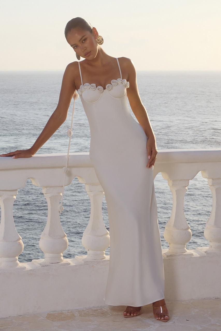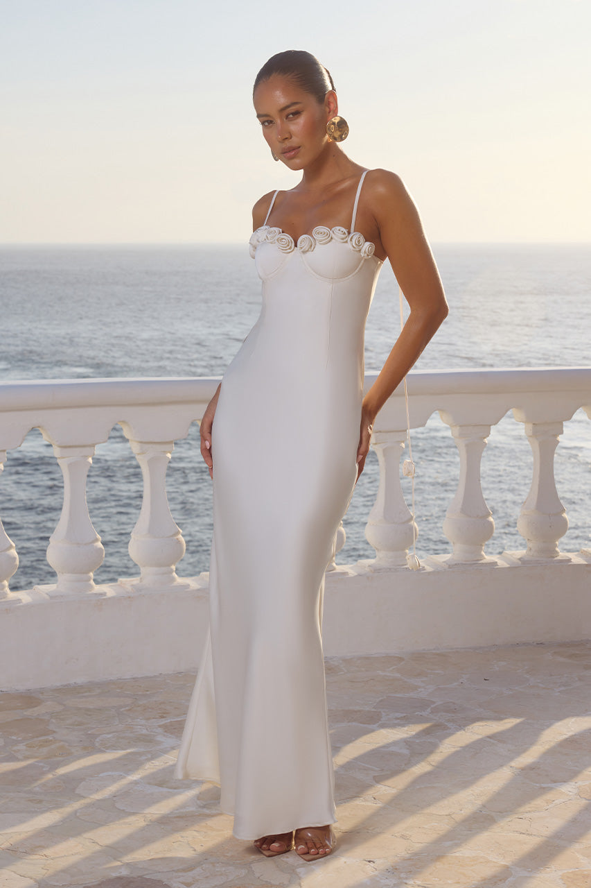 COMING SOON – Hold tight! This style will be yours by early September. With a rosette trim that flows delicately to the back, our Lavena Maxi Dress is a unique, feminine forever piece. – Maxi length- Sweetheart neckline with underwire- Centre back invisible zipper- Lined, non-stretch- Body: 97% Polyester u0026 3% Spandex, Lining: 100% Polyester Please refer to care label for garment care instructions. Colours may appear slightly different to the website due to lighting, computer picture resolution and monitor settings. ~section~ – Length (Size S): 143-145cm/56-57inches. It is true to size. – If you need more help with sizing, see our size guide or email us at [email protected] ~section~ Annabel wears a size AU 8/ S/ US 4 and is 175cm tall.