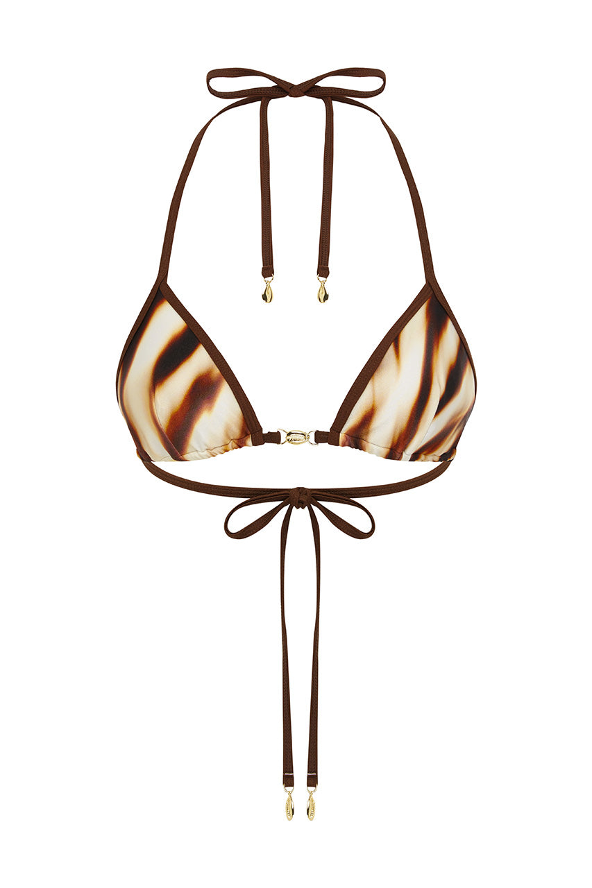 Our Miami Top is a classic triangle style that you know and love, with seashell hardware details for that island feel, pair with our Miami Bottom for the complete look. – Triangle style- Halter neck and back tie- Lined with stretch- 82% Nylon u0026 18% Elastane Please refer to care label for garment care instructions. Colours may appear slightly different to the website due to lighting, computer picture resolution and monitor settings. Print placement may vary between each individual item. ~section~ – Length:16cm/6.5inches (Size S, not including straps). – If you need more help with sizing, see our size guide or email us at [email protected] ~section~ Eve wears a size AU 6/ XS/ US 2 and is 175cm tall.