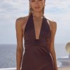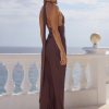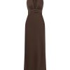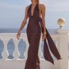Our Sylvie Maxi Dress features a plunging neckline with pleats to shape the body and dramatic sashes that fall from the neck, making it a feminine, timeless piece. – Maxi length- Halter neck- Centre back invisible zipper- Lined, non-stretch- Body: 97% Polyester u0026 3% Spandex, Lining: 100% Polyester Please refer to care label for garment care instructions. Colours may appear slightly different to the website due to lighting, computer picture resolution and monitor settings. ~section~ – Length (Size S): 150cm/59inches. It is true to size. – If you need more help with sizing, see our size guide or email us at [email protected] ~section~ Stacy wears a size AU 8/ S/ US 4 and is 180cm tall.