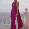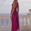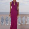 Our Sylvie Maxi Dress features a plunging neckline with pleats to shape the body and dr