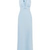 Our Sylvie Maxi Dress features a plunging neckline with pleats to shape the body and dramatic sashes that fall from the neck, making it a feminine, timeless piece. – Maxi length- Halter neck- Centre back invisible zipper- Lined, non-stretch- Body: 97% Polyester u0026 3% Spandex, Lining: 100% Polyester Please refer to care label for garment care instructions. Colours may appear slightly different to the website due to lighting, computer picture resolution and monitor settings. ~section~ – Length (Size S): 150cm/59inches. It is true to size. – If you need more help with sizing, see our size guide or email us at [email protected] ~section~ Stacy wears a size AU 8/ S/ US 4 and is 180cm tall.